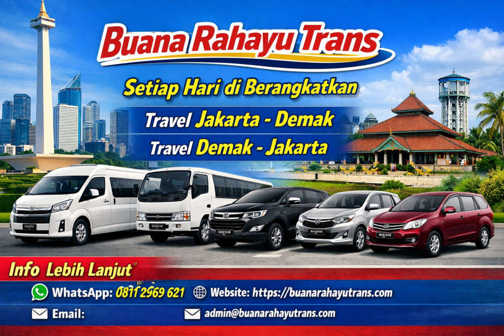 Travel Jakarta Demak door to door bersama Buana Rahayu Trans. Antar jemput langsung sampai tujuan, armada Hiace & Elf, harga mulai Rp300.000. Booking via WA 0811-2969-621.