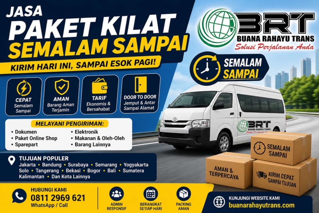 Layanan Jasa Paket Kilat Semalam Sampai menjadi solusi terbaik untuk kebutuhan pengiriman cepat, aman, dan terpercaya. Dengan dukungan armada profesional serta layanan door to door dari Buana Rahayu Trans, pengiriman paket kini menjadi lebih praktis dan efisien.