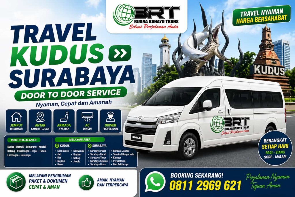 Layanan travel dari Kudus ke Surabaya kini semakin diminati karena lebih praktis dibandingkan bus umum maupun kereta. Selain hemat waktu, perjalanan juga terasa lebih nyaman dengan armada eksklusif dan fasilitas lengkap.